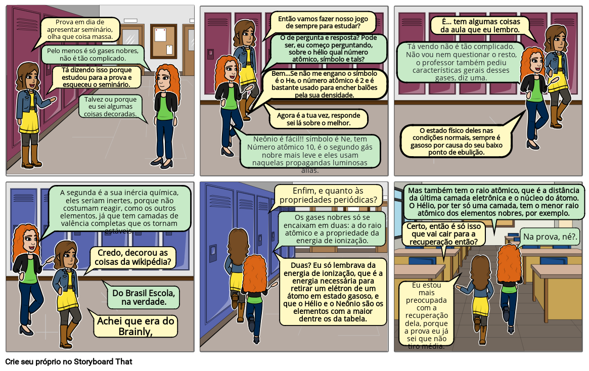 Tá vendo não é tão complicado. Não vou nem questionar o resto, o professor também pediu características gerais desses gases, diz uma.