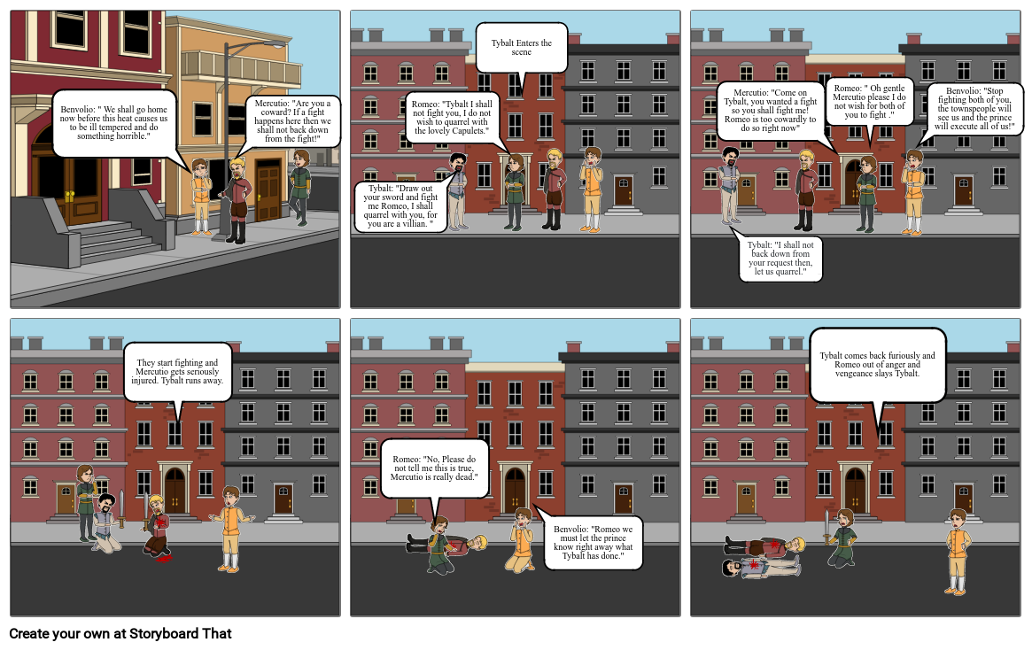 Benvolio: "Romeo we must let the prince know right away what Tybalt has done."