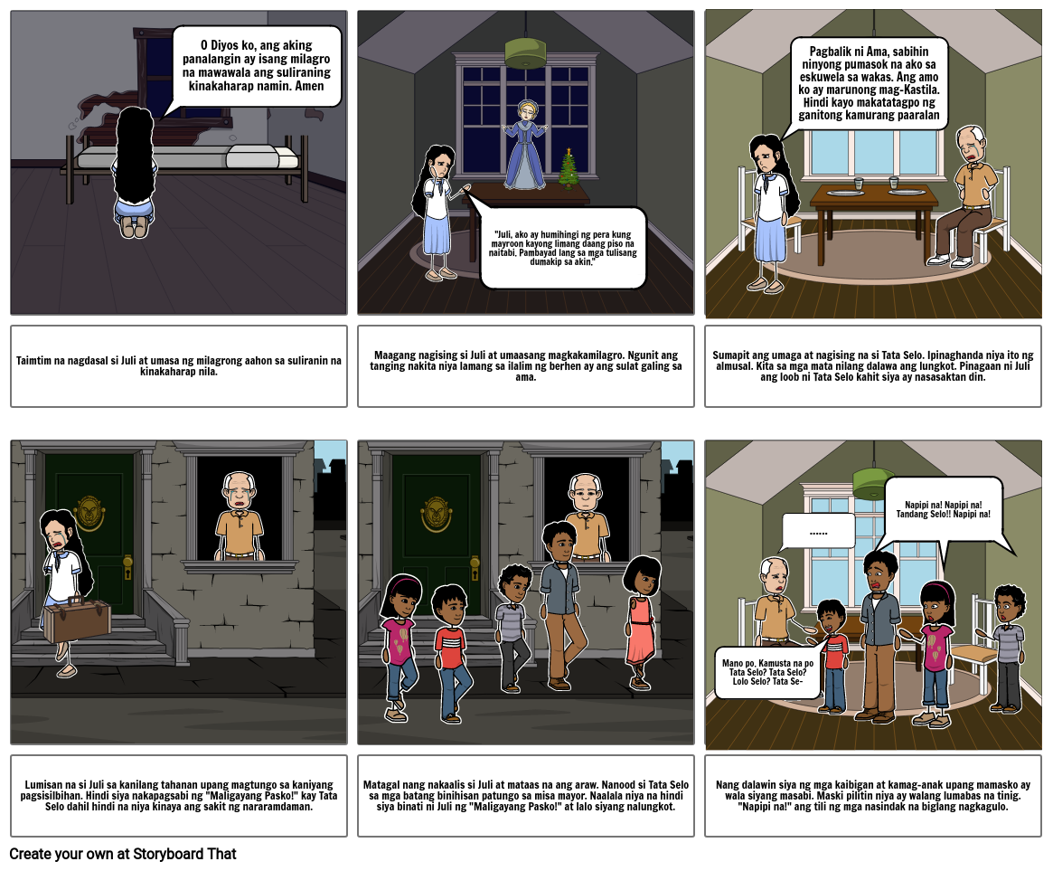 Lumisan na si Juli sa kanilang tahanan upang magtungo sa kaniyang pagsisilbihan. Hindi siya nakapagsabi ng "Maligayang Pasko!" kay Tata Selo dahil hindi na niya kinaya ang sakit ng nararamdaman.