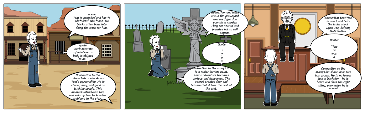 Connection to the story:This shows how Tom has grown. He is no longer just a trickster—he is brave and does the right thing, even when he is scared.