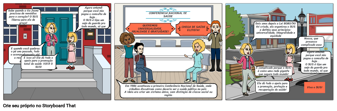 Em 1986 aconteceu a primeira Conferência Nacional de Saúde, onde cidadãos discutiram como deveria ser a saúde pública no país.A ideia era criar um sistema único, sem distinção de classe social ou região