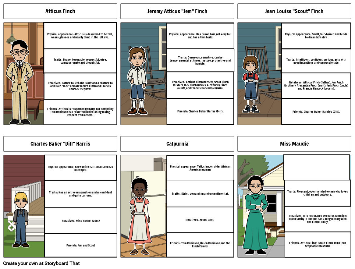 Friends: Atticus Finch, Scout Finch, Jem Finch, Stephanie Crawford.