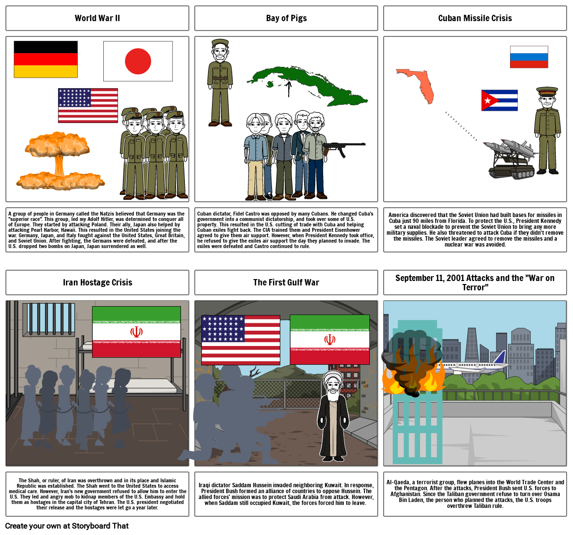Al-Qaeda, a terrorist group, flew planes into the World Trade Center and the Pentagon. After the attacks, President Bush sent U.S. forces to Afghanistan. Since the Taliban government refuse to turn over Osama Bin Laden, the person who planned the attacks, the U.S. troops overthrew Taliban rule.