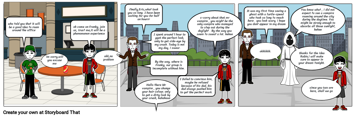s-sorry about that mr vampire , you might be the only vampire who managed to step out during the daylight . By the way you seem to sweat a lot. hehee