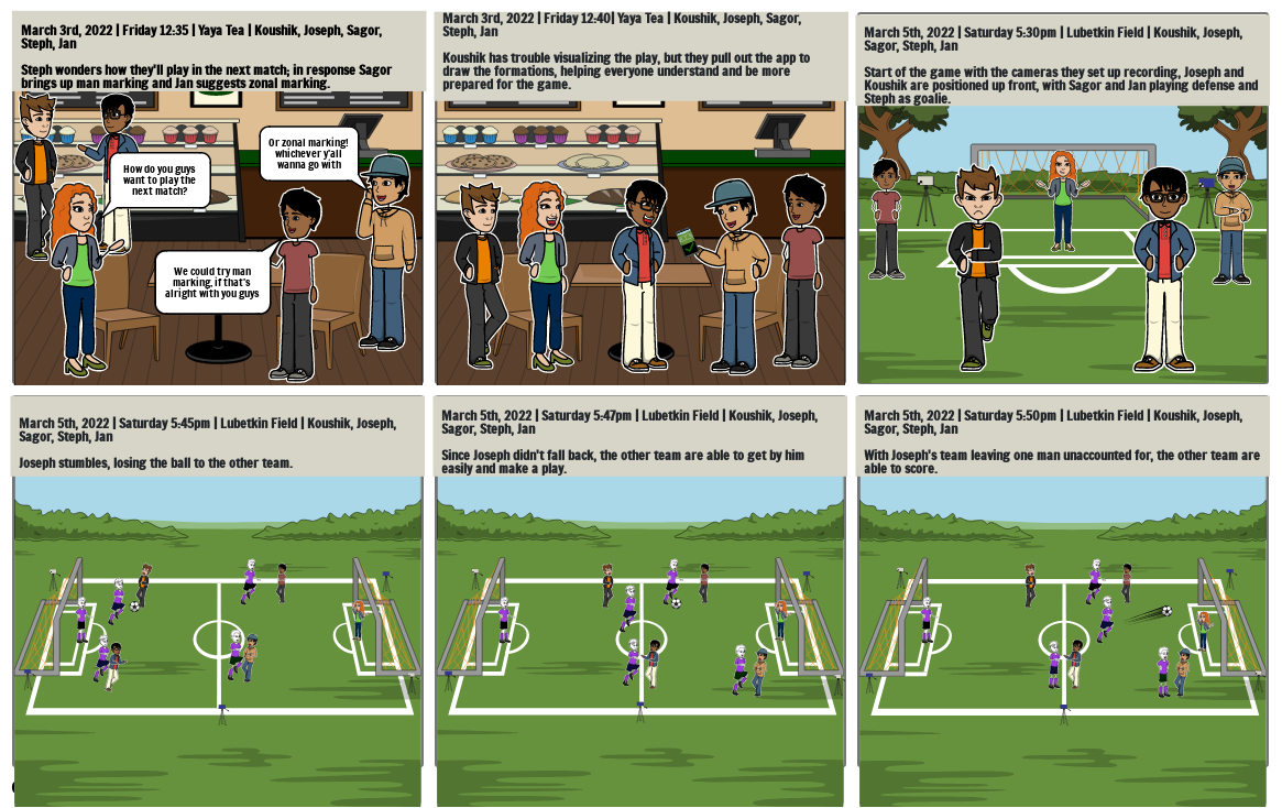 March 3rd, 2022 | Friday 12:40| Yaya Tea | Koushik, Joseph, Sagor, Steph, JanKoushik has trouble visualizing the play, but they pull out the app to draw the formations, helping everyone understand and be more prepared for the game.