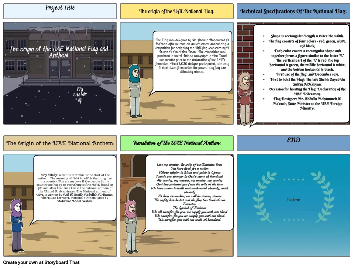 The Flag was designed by Mr. Abdulla Mohammed Al Ma’enah after he read an advertisement announcing a competition for designing the UAE flag sponsored by Al Diwan Al Amiri Abu Dhabi. The competition was published in the Al Ittihad newspaper in Abu Dhabi two months prior to the declaration of the UAE’s formation. About 1,030 designs participated, with only 6 short-listed from which the present-day flag was ultimately selected.