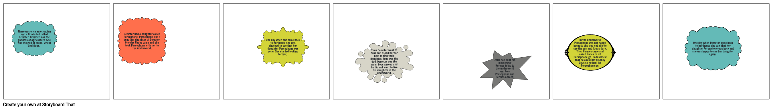 Demeter had a daughter called Persephone. Persephone was a beautiful daughter of Demeter. One day Hades came and she took Persephone with her to the underworld.