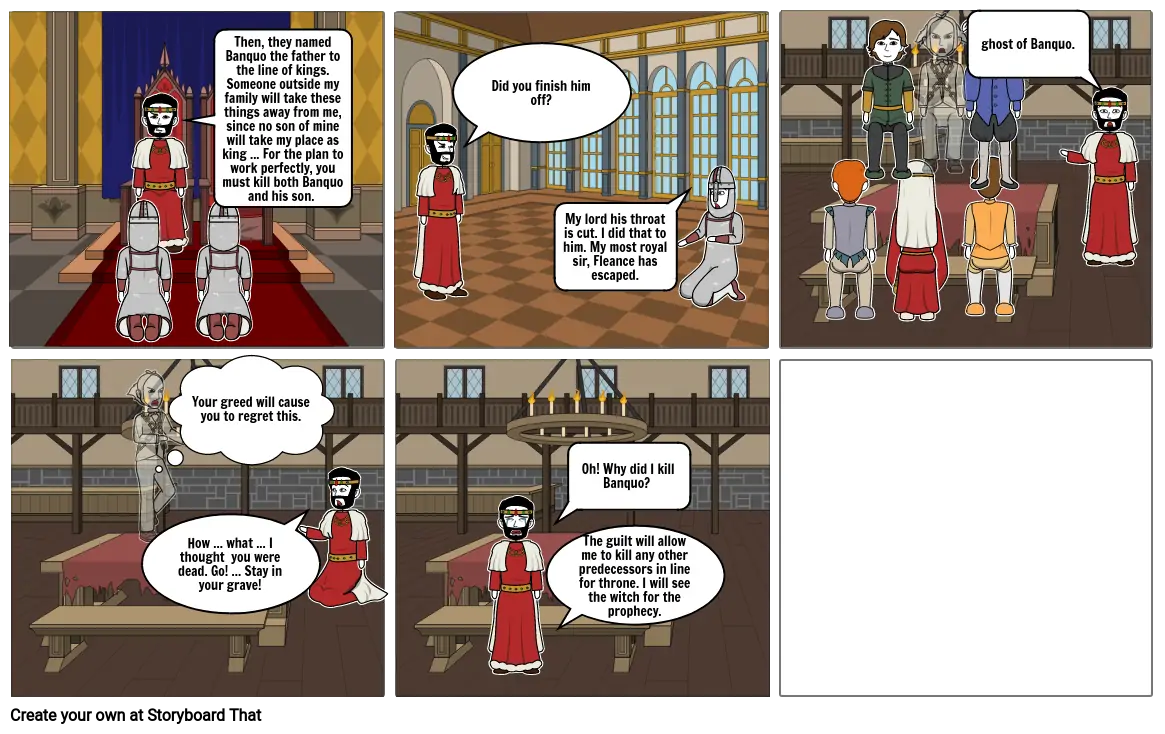 Then, they named Banquo the father to the line of kings. Someone outside my family will take these things away from me, since no son of mine will take my place as king ... For the plan to work perfectly, you must kill both Banquo and his son.