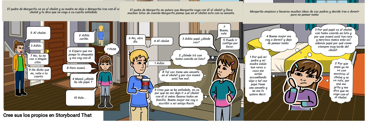 9 Creo que se ha enfadado, no se por qué no me deja ir a el chalet con él si antes íbamos todos en familia. Bueno mejor me voy a escribir a mi amiga Rocío.