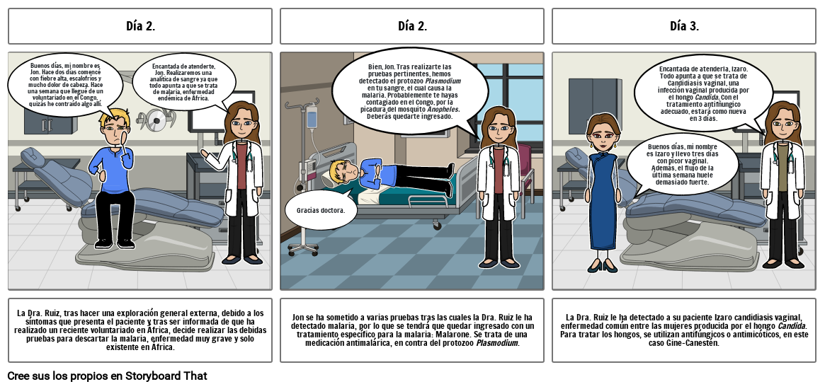 Bien, Jon. Tras realizarte las pruebas pertinentes, hemos detectado el protozoo Plasmodium en tu sangre, el cual causa la malaria. Probablemente te hayas contagiado en el Congo, por la picadura del mosquito Anopheles. Deberás quedarte ingresado.
