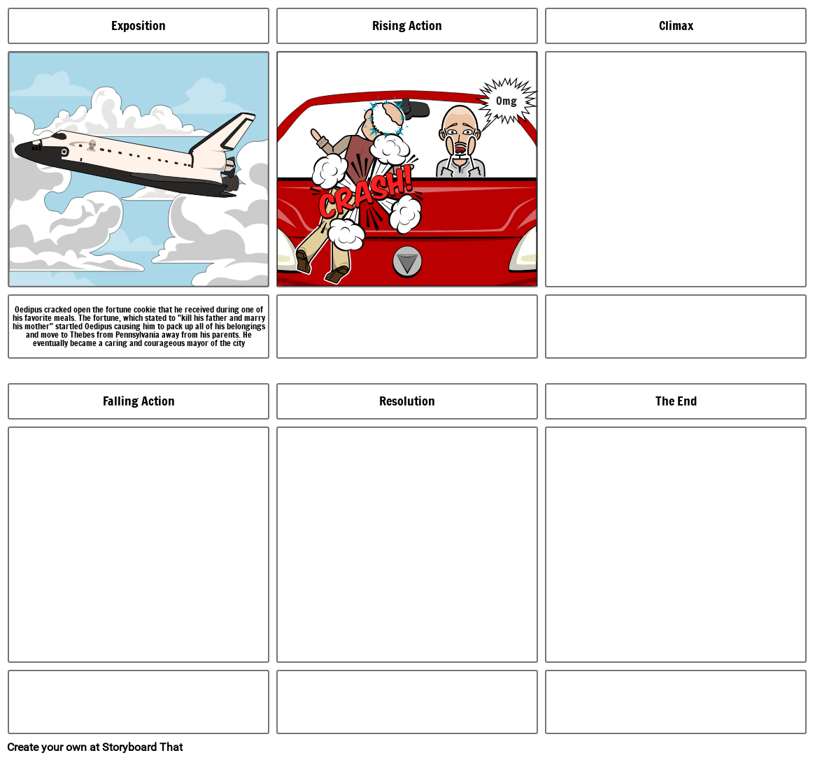 Oedipus cracked open the fortune cookie that he received during one of his favorite meals. The fortune, which stated to "kill his father and marry his mother" startled Oedipus causing him to pack up all of his belongings and move to Thebes from Pennsylvania away from his parents. He eventually became a caring and courageous mayor of the city