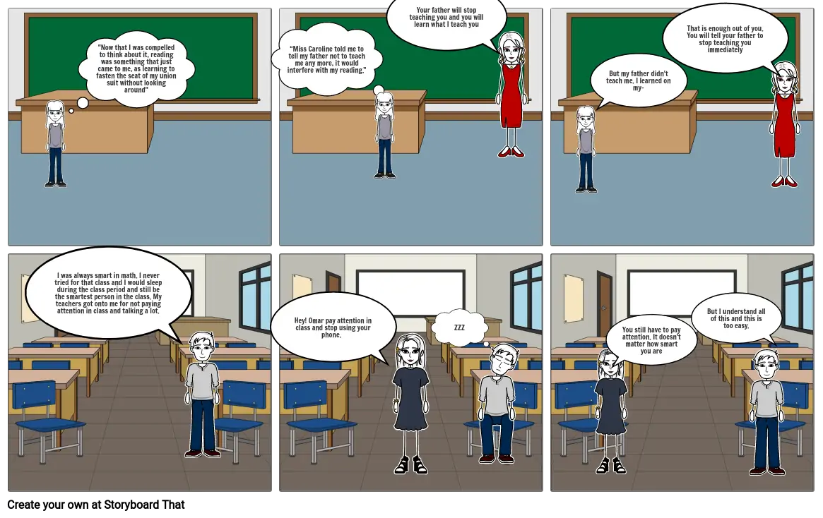 “Miss Caroline told me to tell my father not to teach me any more, it would interfere with my reading.”