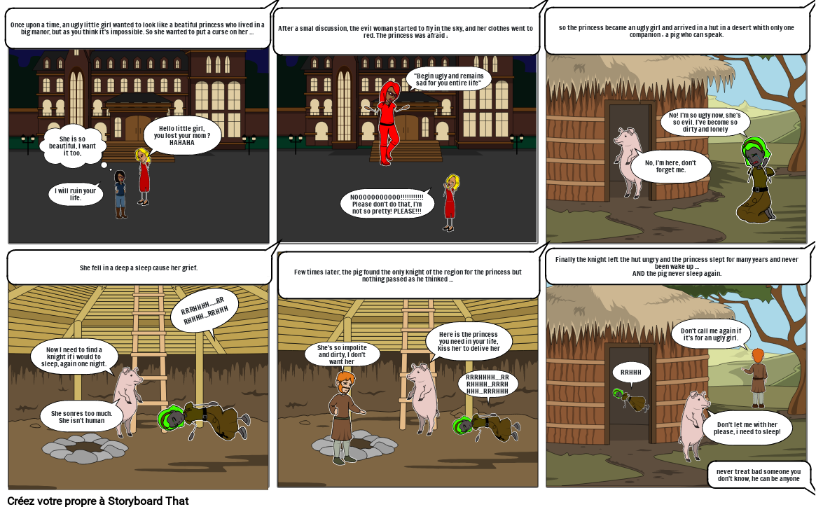 so the princess became an ugly girl and arrived in a hut in a desert whith only one companion : a pig who can speak.