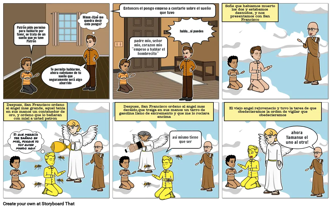 Después, San Francisco ordeno al ángel más decaido,que traiga en sus manos un tarro de gasolina lleno de excremento y que me lo rociara encima