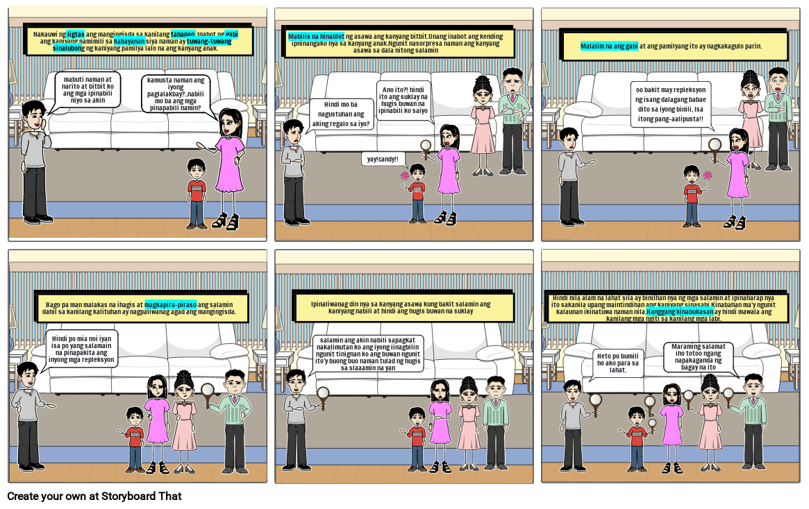 Mabilis na hinablot ng asawa ang kanyang bitbit.Unang inabot ang kending ipninangako nya sa kanyang anak.Ngunit nasorpresa naman ang kanyang asawa sa dala nitong salamin