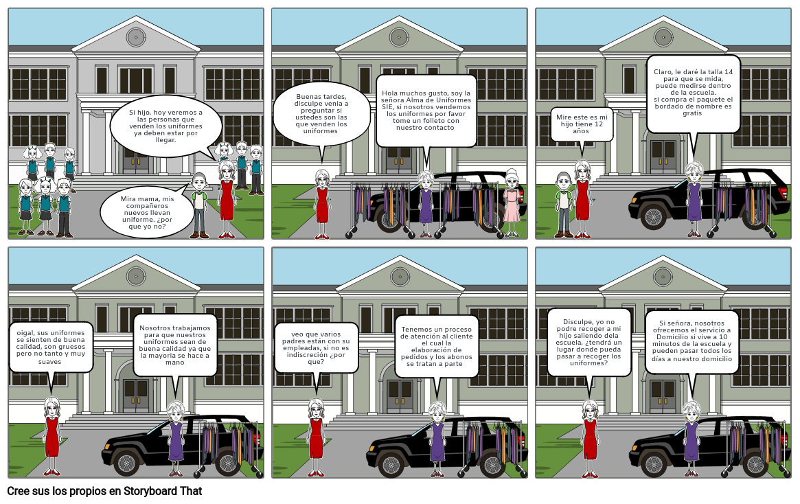Hola muchos gusto, soy la señora Alma de Uniformes SIE, si nosotros vendemos los uniformes por favor tome un folleto con nuestro contacto
