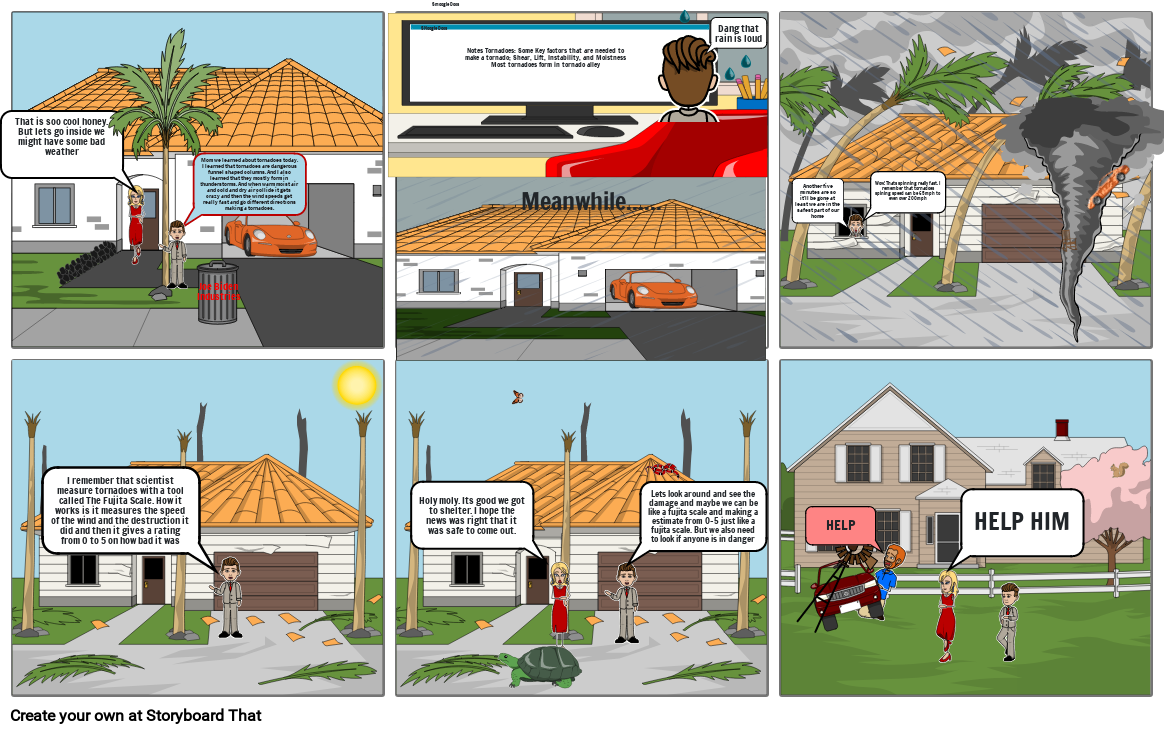 I remember that scientist measure tornadoes with a tool called The Fujita Scale. How it works is it measures the speed of the wind and the destruction it did and then it gives a rating from 0 to 5 on how bad it was