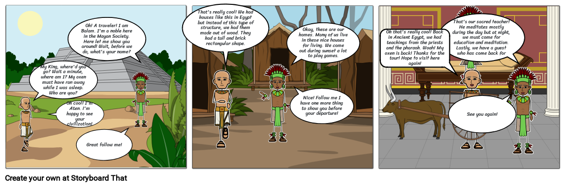Oh! A traveler! I am Balam. I'm a noble here in the Mayan Society. Here let me show you around! Wait, before we do, what's your name?