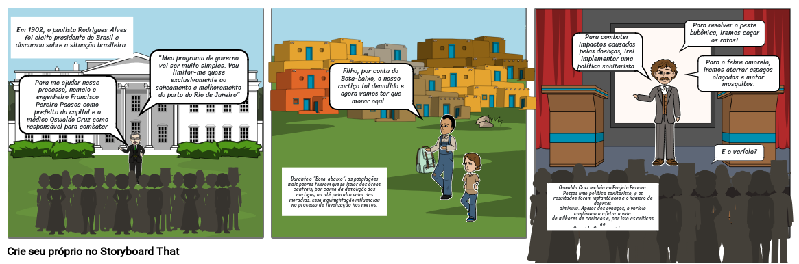 Para me ajudar nesse processo, nomeio o engenheiro Francisco Pereira Paasos como prefeito da capital e o médico Oswaldo Cruz como responsável para combater as doenças que nos afligem.