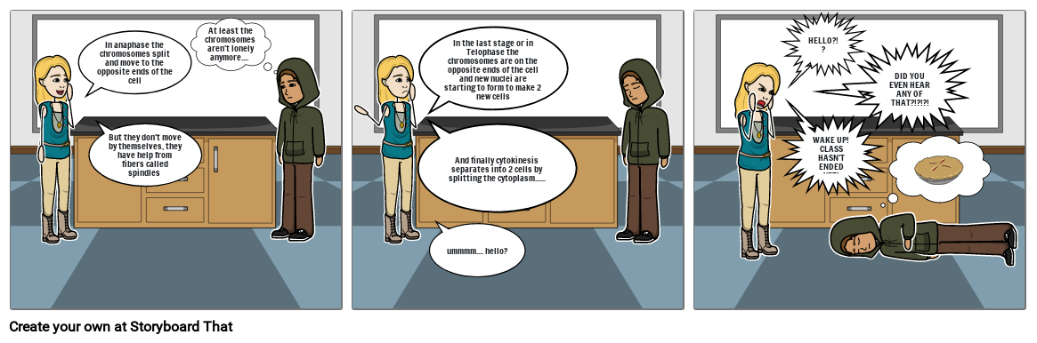 In the last stage or in Telophase the chromosomes are on the opposite ends of the cell and new nuclei are starting to form to make 2 new cells