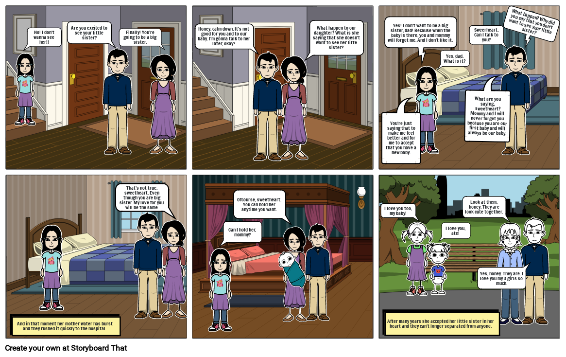 Yes! I don't want to be a big sister, dad! Because when the baby is there, you and mommy will forget me. And I don't like it.
