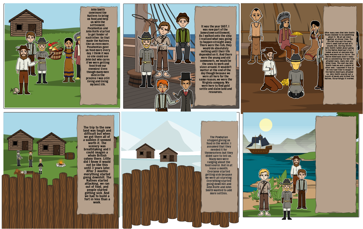 The trip to the new land was tough and difficult but when we got there all of a sudden it seemed worth it. The scenery was breathtaking and I could imagen a whole British colony there. Little did I know it would not be like this until 3 years later. After 3 months everything started going downhill. The Natives started attacking, we ran out of food, and people started getting sick. And we had to build a fort in less than a week.