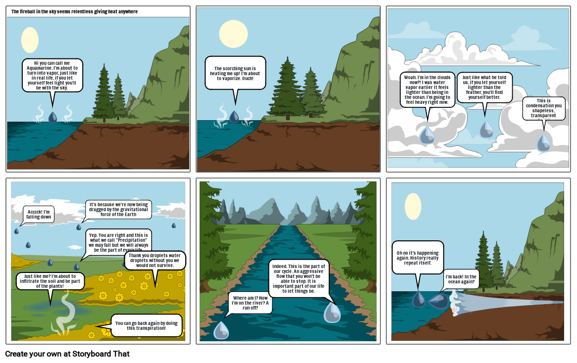 Woah. I'm in the clouds now?! I was water vapor earlier it feels lighter than being in the ocean. I'm going to feel heavy right now.
