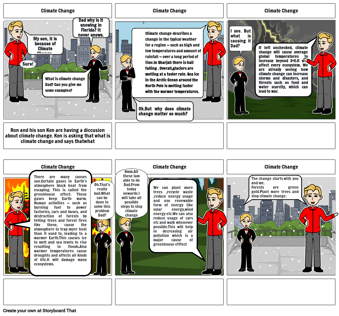 Ron and his son Ken are having a diccusion about climate change. Ken is asking that what is climate change and says thatwhat