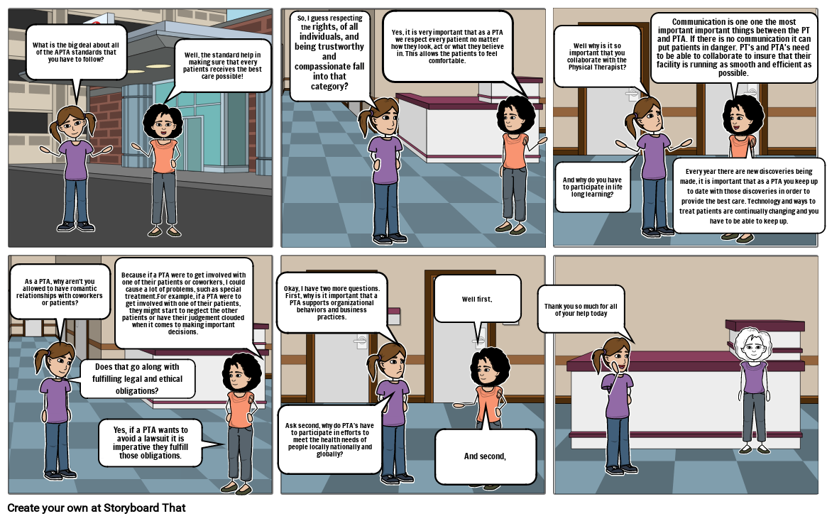 Because if a PTA were to get involved with one of their patients or coworkers, I could cause a lot of problems, such as special treatment.For example, if a PTA were to get involved with one of their patients, they might start to neglect the other patients or have their judgement clouded when it comes to making important decisions.