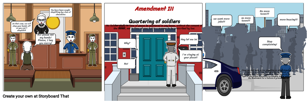 Amendment IIIQuartering of soldiersNo Soldier shall, in time of peace be quartered in any house, without the consent of the Owner, nor in time of war, but in a manner to be prescribed by law.