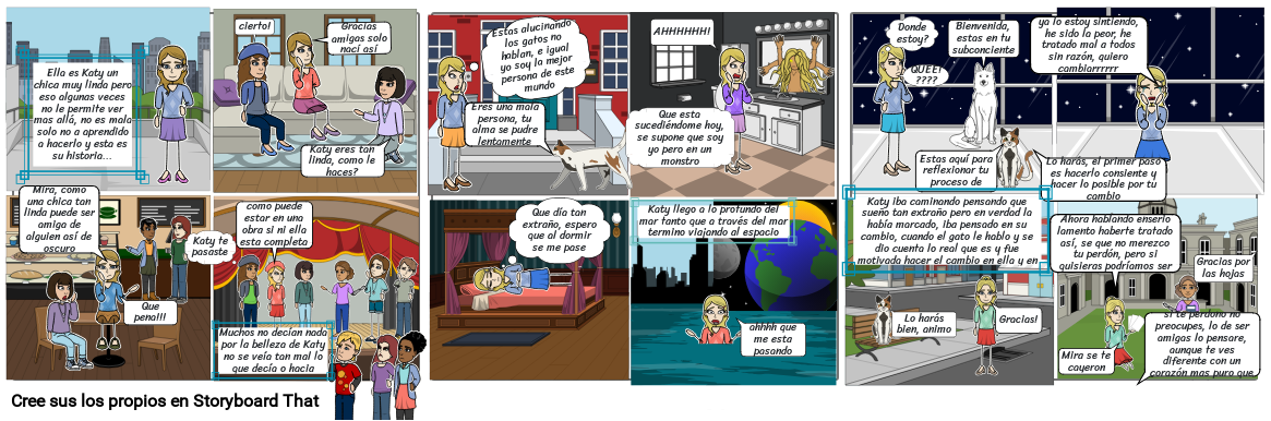 Katy iba caminando pensando que sueño tan extraño pero en verdad la había marcado, iba pensado en su cambio, cuando el gato le hablo y se dio cuenta lo real que es y fue motivada hacer el cambio en ella y en su mundo