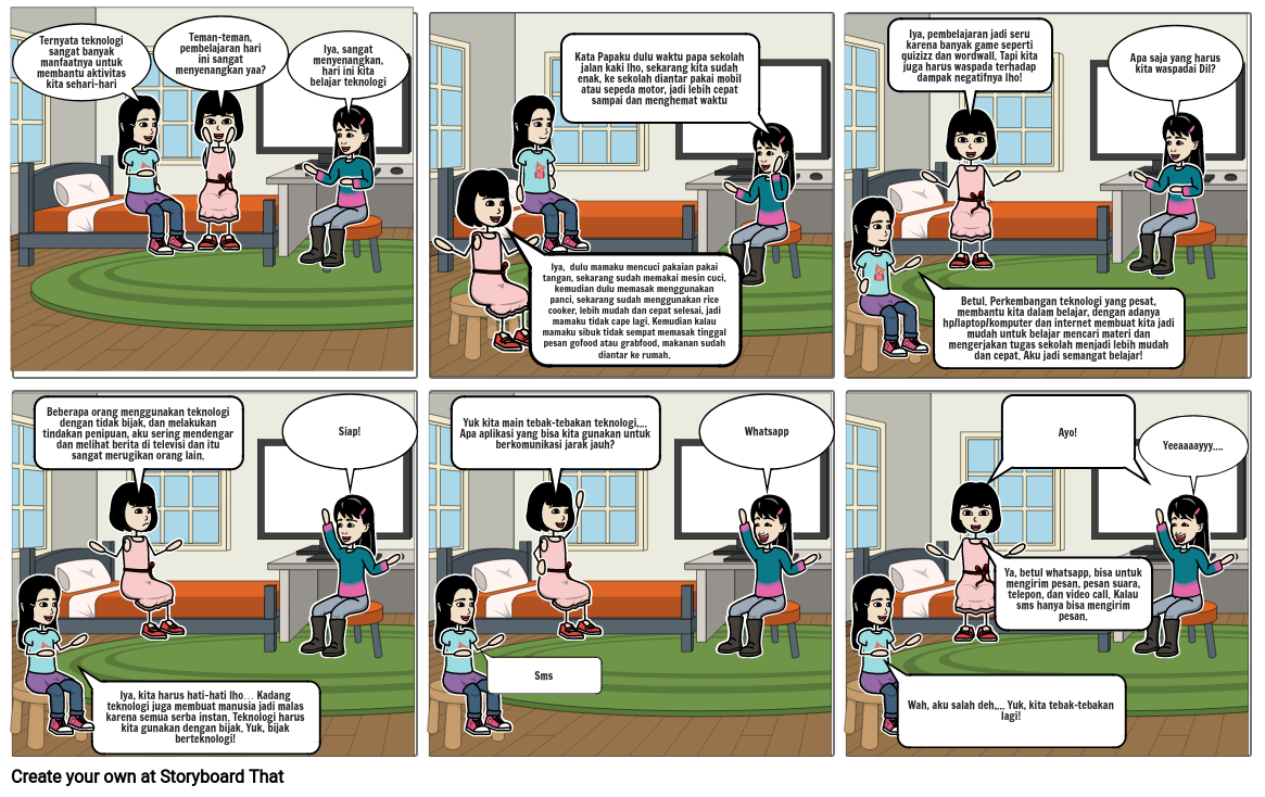 Iya, kita harus hati-hati lho… Kadang teknologi juga membuat manusia jadi malas karena semua serba instan. Teknologi harus kita gunakan dengan bijak. Yuk, bijak berteknologi!