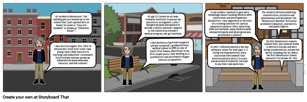 I was born on august 31st, 1870 in Chiaravalle, Italy! Ever since I was young I had a wide interest in learning, and education! I eventually lived in Rome and was grown up influenced by many museums, libraries, and fine schools!