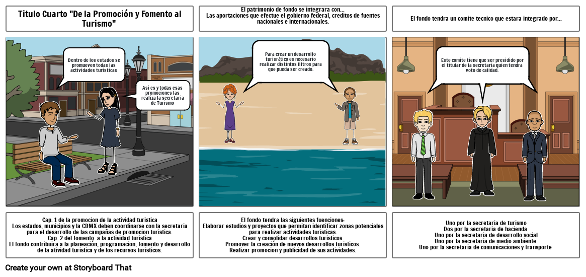 Cap. 1 de la promocion de la actividad turisticaLos estados, municipios y la CDMX deben coordinarse con la secretaria para el desarrollo de las campañas de promocion turistica.Cap. 2 del fomento  a la actividad turisticaEl fondo contribuira a la planeación, programacion, fomento y desarrollo de la atividad turistica y de los recursos turisticos.