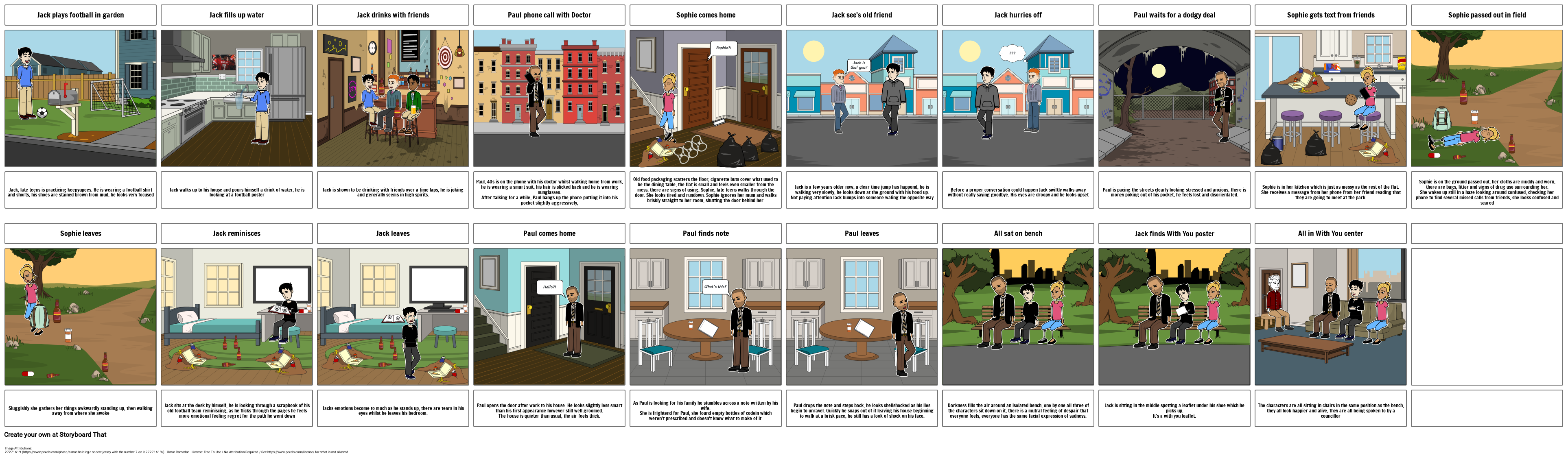 Jack sits at the desk by himself, he is looking through a scrapbook of his old football team reminiscing, as he flicks through the pages he feels more emotional feeling regret for the path he went down