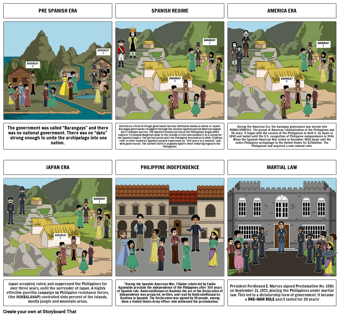 During the American Era, the barangay governance was turned into RURALCOUNCILS. The period of American colonialization of the Philippines was 48 years. It began with the cession of the Philippines to theU.S. by Spain in 1898 and lasted until the U.S. recognition of Philippine independence in 1946. When the Spanish-American War ended in December 1898,Spain sold the entire Philippine archipelago to the United States for $20million. The Philippines had acquired a new colonial ruler.