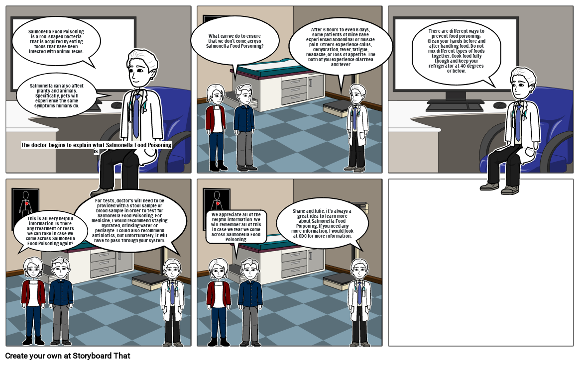 The doctor begins to explain what Salmonella Food Poisoning is.