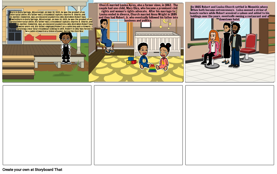 In 1865 Robert and Louisa Church settled in Memphis where they both became entrepreneurs.  Luisa opened a string of beauty parlors while Robert acquired a saloon and added to his holdings over the years, eventually owning a restaurant and a downtown hotel.
