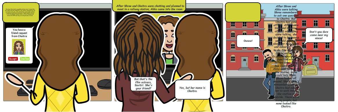 One day, Shree had a squabble with her best friend. She got angry and unfriended her. But almost immediately, she started to miss her. She opened the social media website to apologise when she saw a new friend request. It was from a pretty girl named Chaitra. Shree immediately clicked ACCEPT and they instantly became friends.