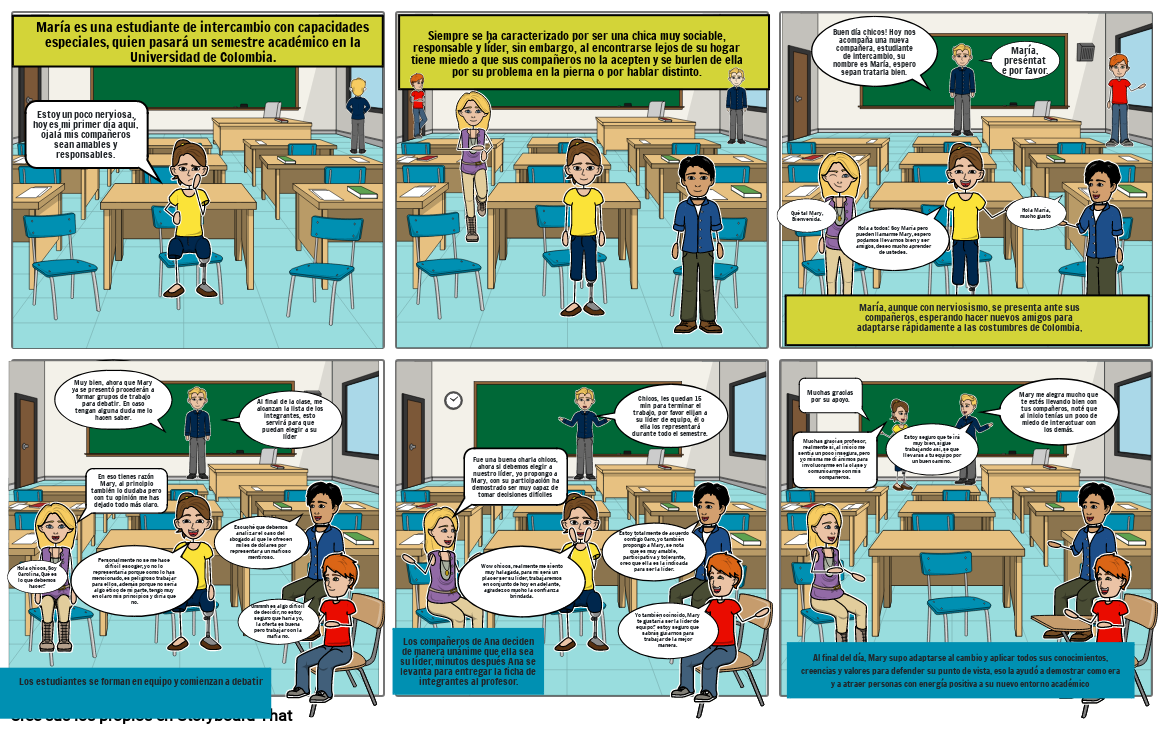 María es una estudiante de intercambio con capacidades especiales, quien pasará un semestre académico en la Universidad de Colombia.