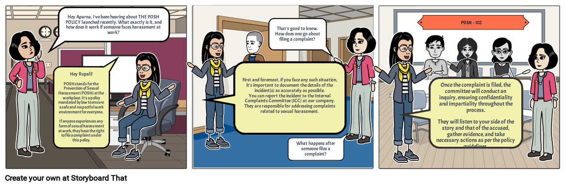 Hey Aparna, I've been hearing about THE POSH POLICY launched recently. What exactly is it, and how does it work if someone faces harassment at work?