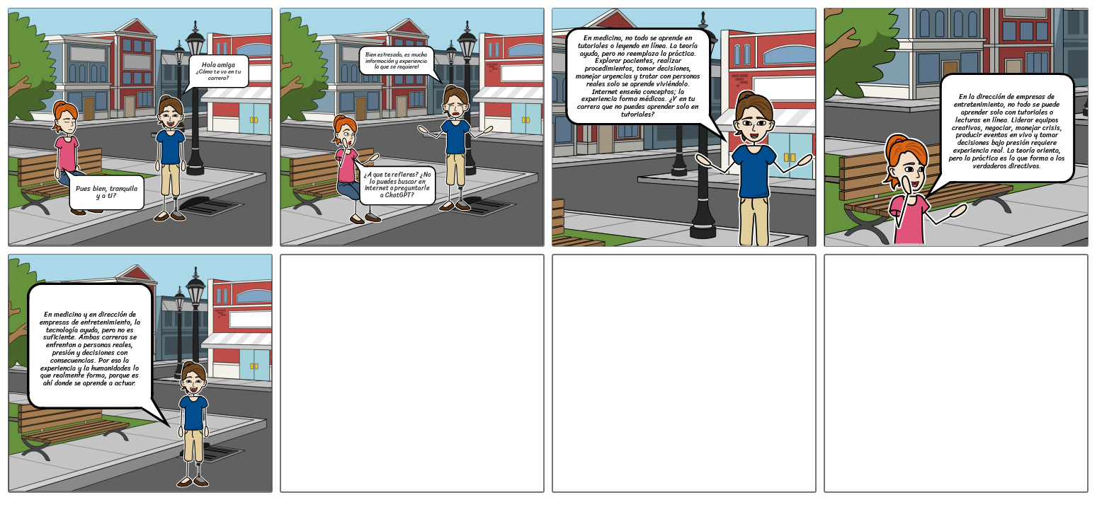 En medicina y en dirección de empresas de entretenimiento, la tecnología ayuda, pero no es suficiente. Ambas carreras se enfrentan a personas reales, presión y decisiones con consecuencias. Por eso la experiencia y la humanidades lo que realmente forma, porque es ahí donde se aprende a actuar.
