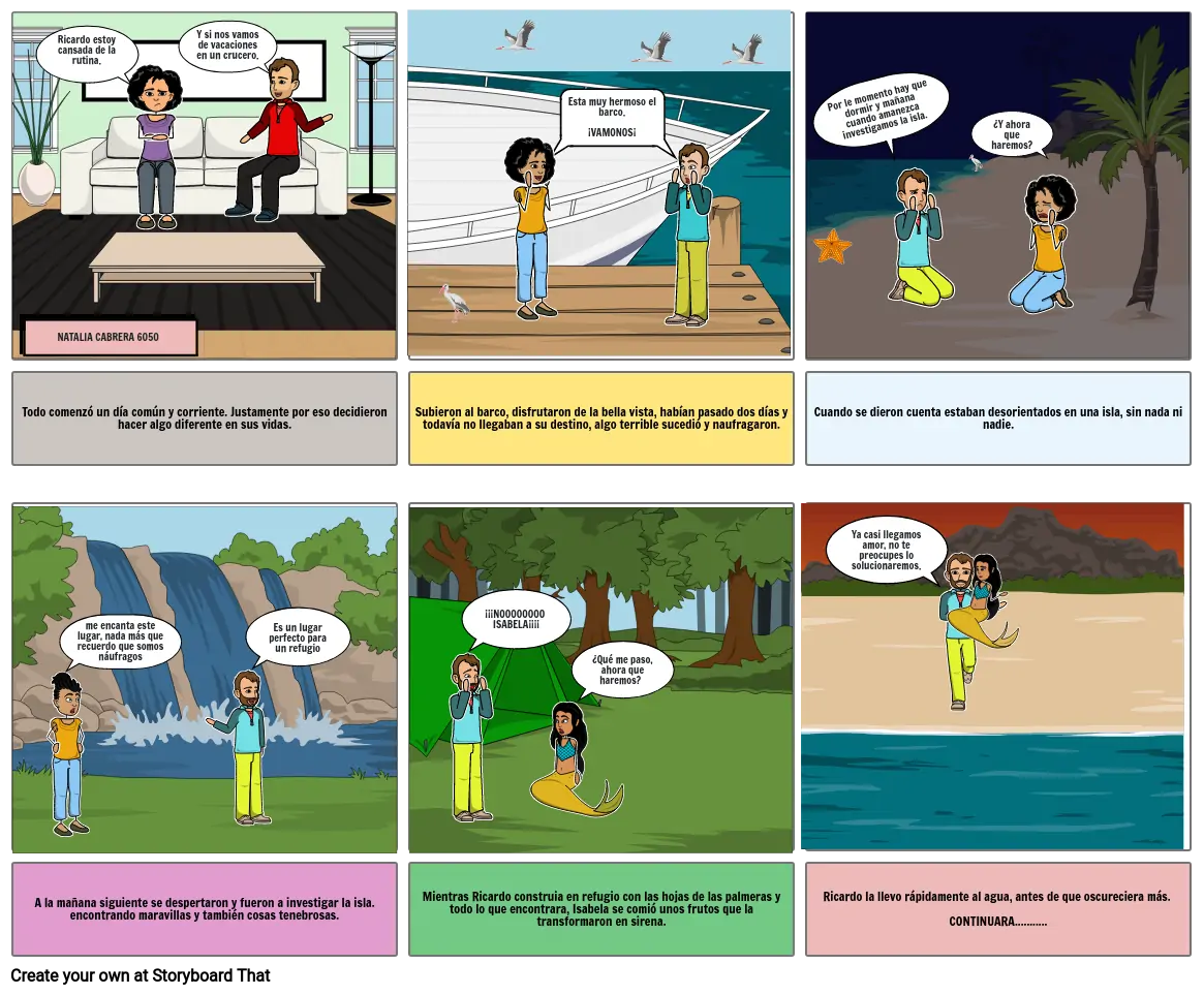 Mientras Ricardo construia en refugio con las hojas de las palmeras y todo lo que encontrara, Isabela se comió unos frutos que la transformaron en sirena.
