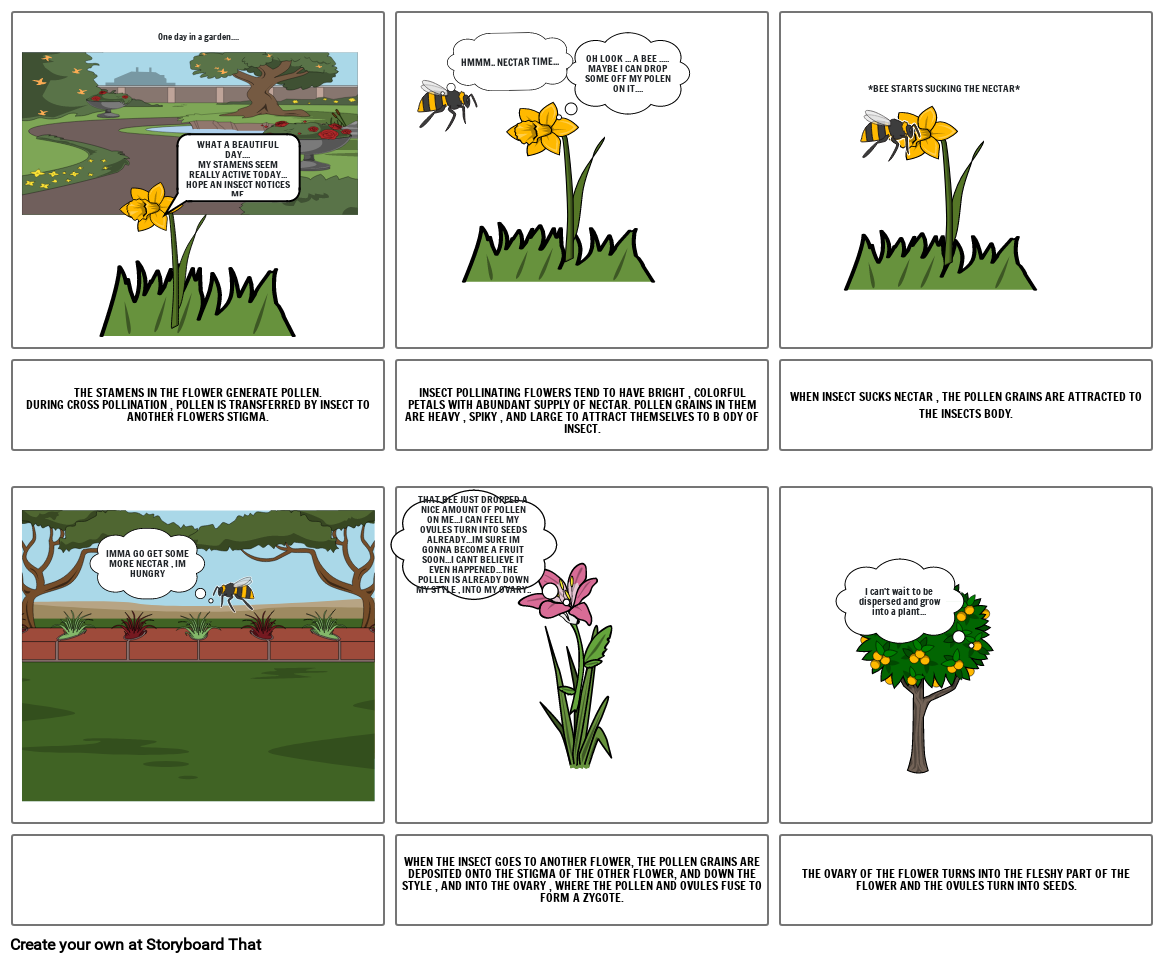 THE STAMENS IN THE FLOWER GENERATE POLLEN. DURING CROSS POLLINATION , POLLEN IS TRANSFERRED BY INSECT TO ANOTHER FLOWERS STIGMA.