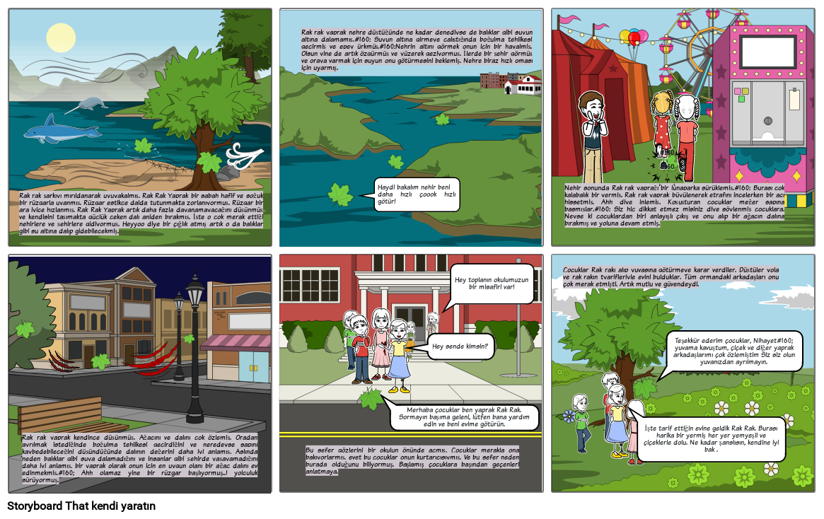 Merhaba çocuklar ben yaprak Rak Rak. Sormayın başıma geleni, lütfen bana yardım edin ve beni evime götürün.