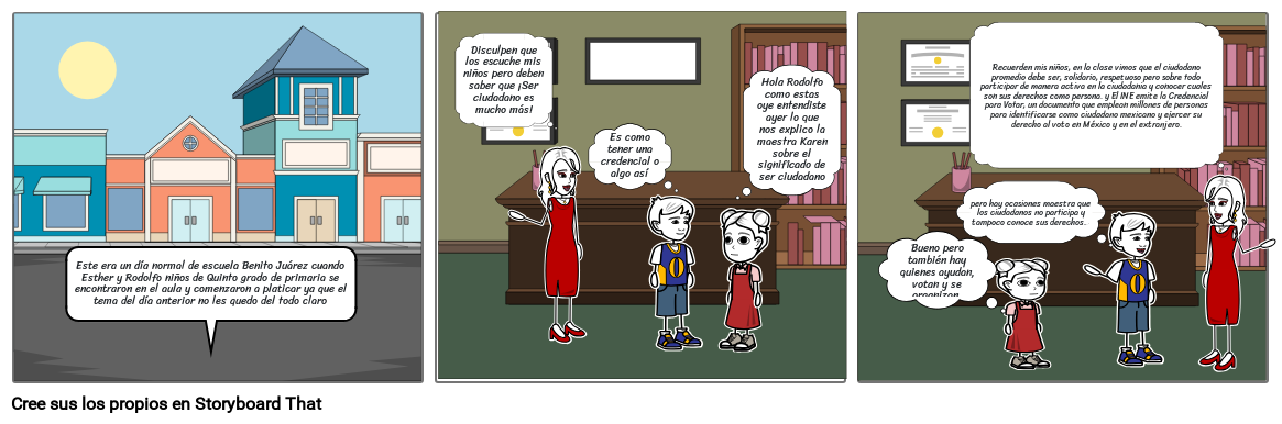 Este era un día normal de escuela Benito Juárez cuando Esther y Rodolfo niños de Quinto grado de primaria se encontraron en el aula y comenzaron a platicar ya que el tema del día anterior no les quedo del todo claro