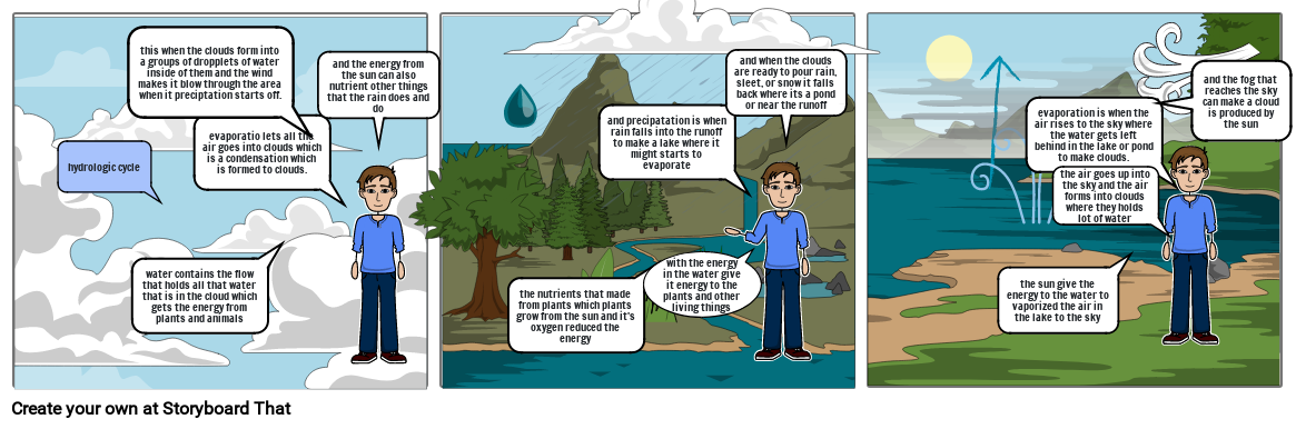water contains the flow that holds all that water that is in the cloud which gets the energy from plants and animals