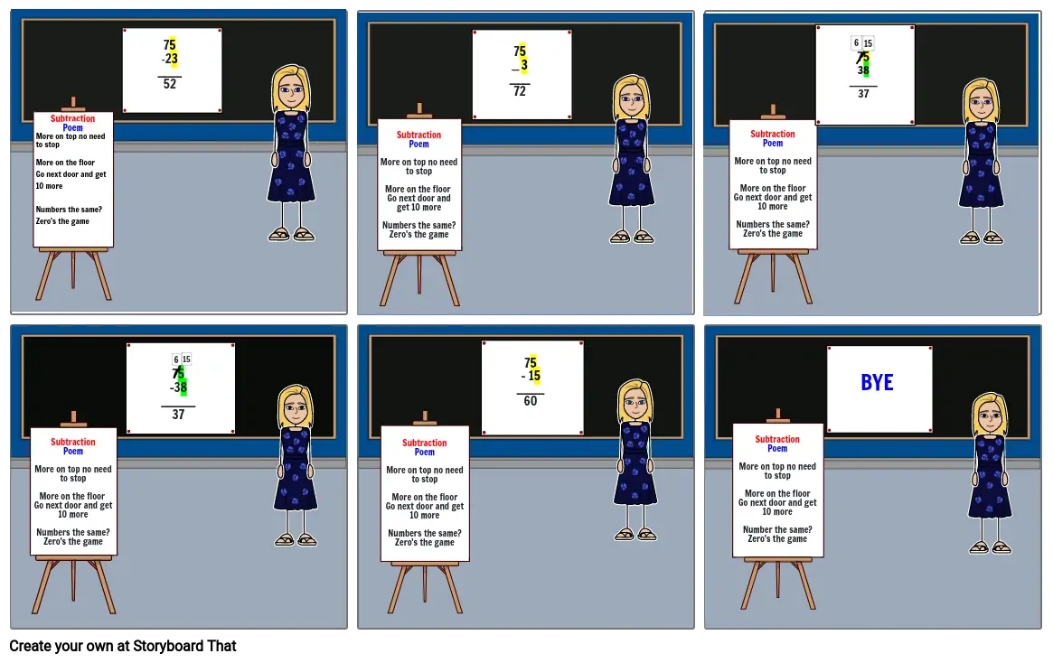 SubtractionPoemMore on top no need to stopMore on the floorGo next door and get 10 moreNumber the same?Zero's the game