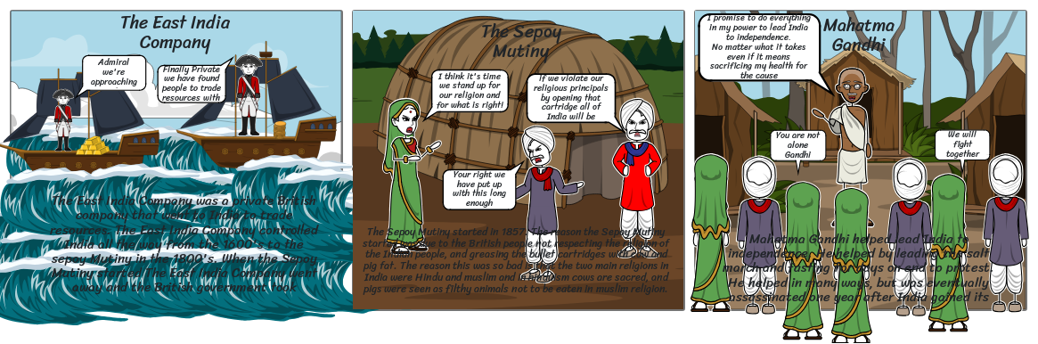 The East India Company was a private British company that went to India to trade resources. The East India Company controlled India all the way from the 1600's to the sepoy Mutiny in the 1800's. When the Sepoy Mutiny started The East India Company went away and the British government took control.