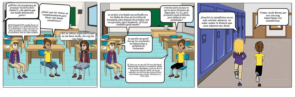 Sí, ahora ya no veo solo "barras decolores". Entiendo qué significa la asimetría, dónde está la moda visualmente y qué nos dice la desviación sobre los datos. ¡Ya no me engañan con noticias que usan gráficas raras! Vamos que se hace Tarde para la otra clase.